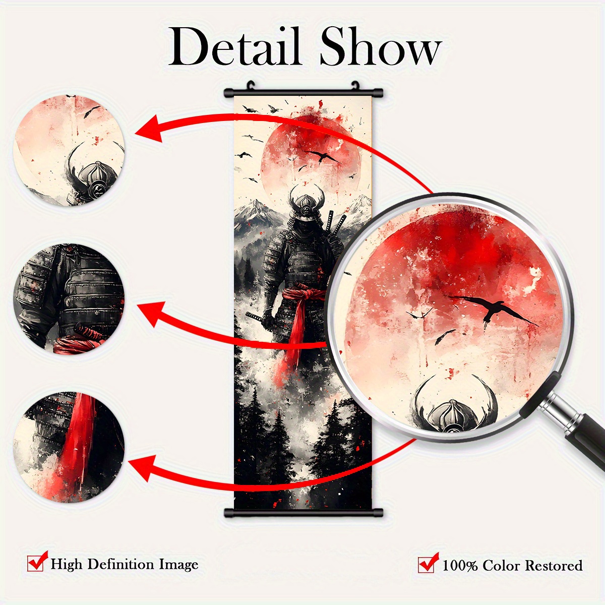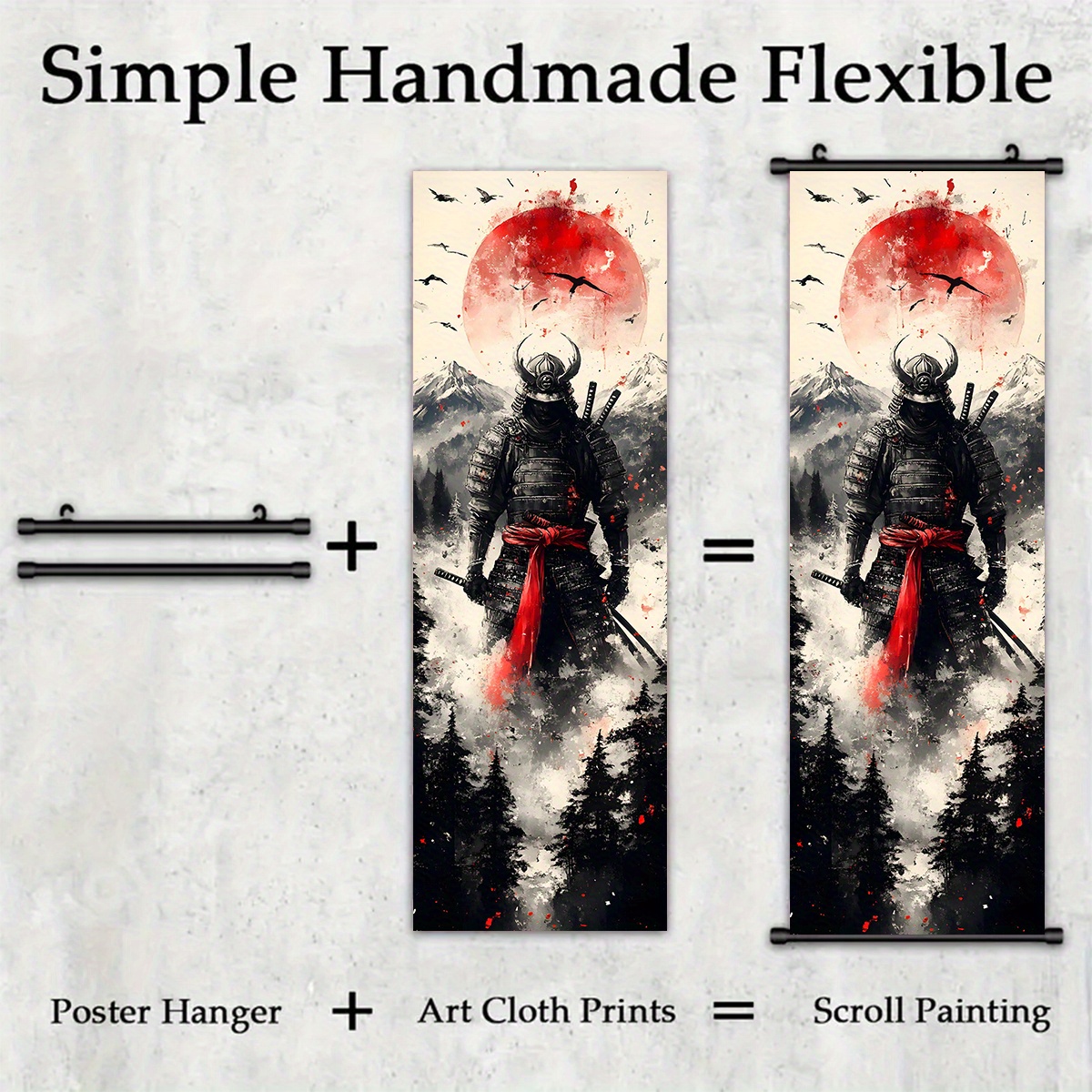 -5pcs Creative Canvas Hanging Scroll Art Set, Samurai Canvas Art, Splash Ink Samurai Landscape Print Canvas Wall Art Set for Bedroom, Office, Dormitory Decoration with Plastic Frame Hooks, Office Decor, Classic Prints, Frame