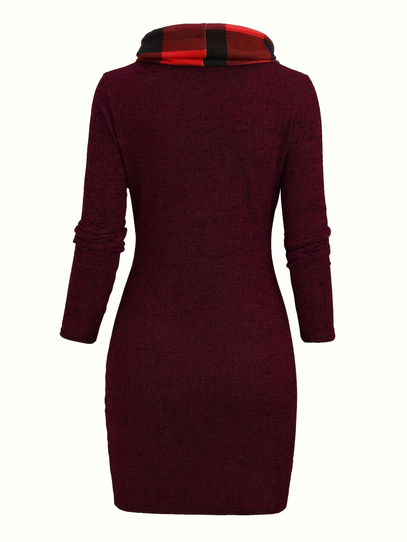-Designed Plaid Patchwork Gathered Long Sleeve Dress