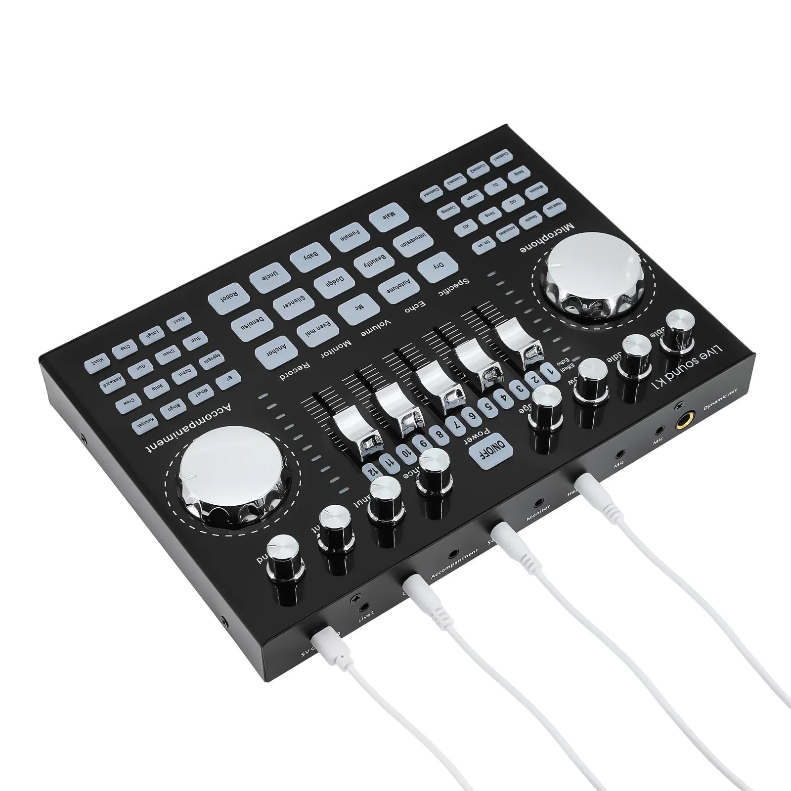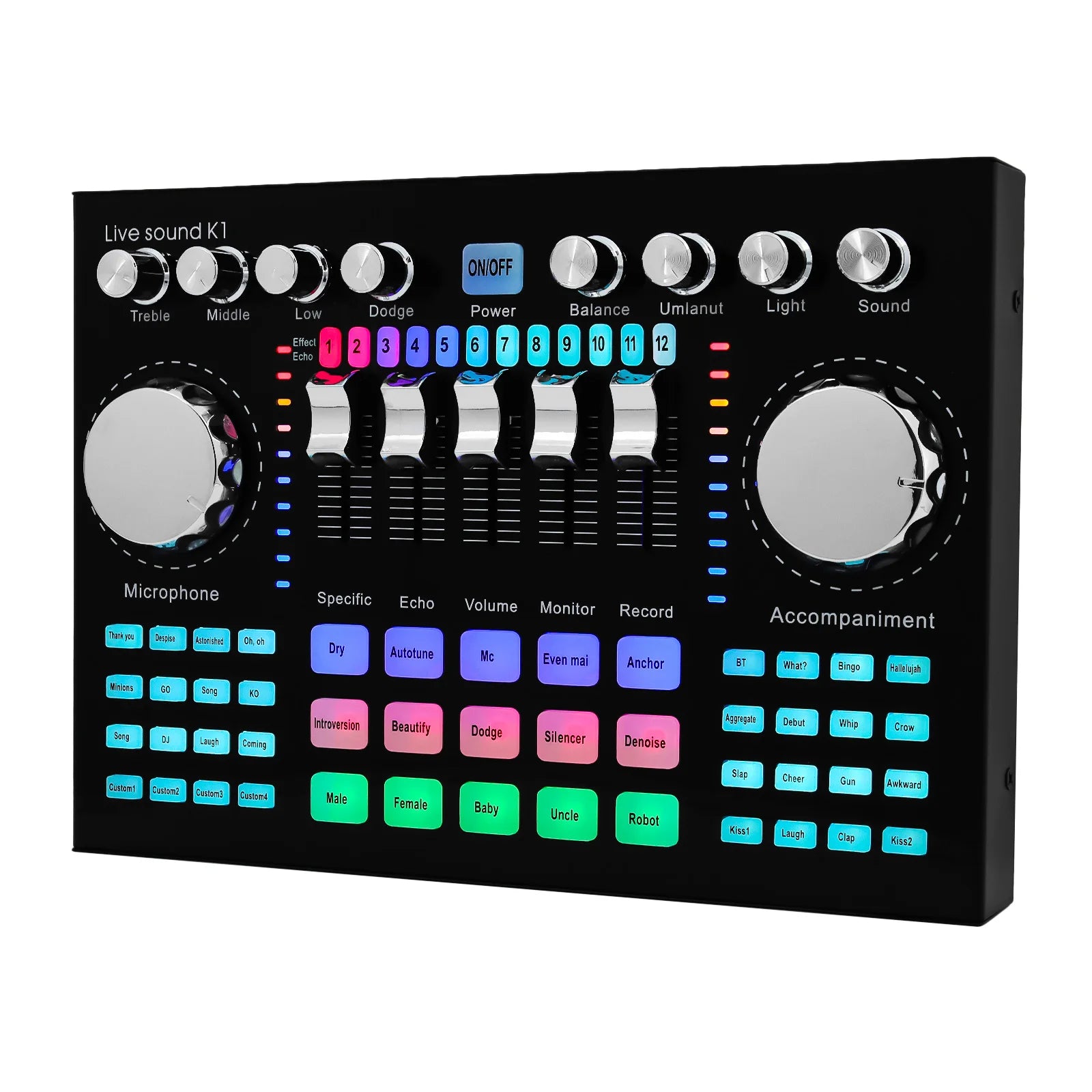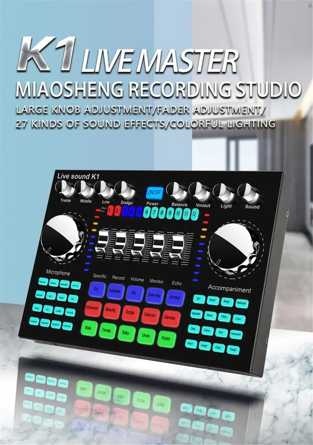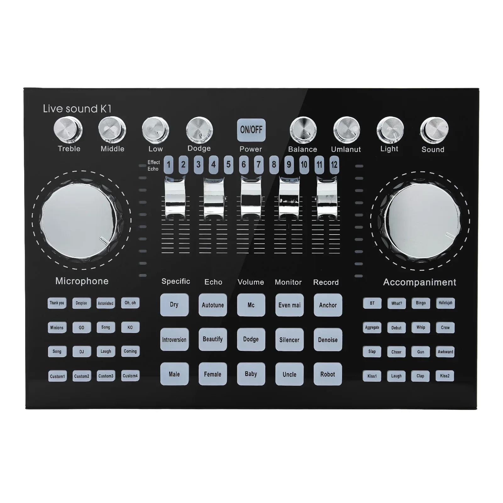 * K1 Live Sound Card Voice Changer Karaoke Audio Mixer for Broadcast Recording KTV Music Audio Multifunctional Live Sound Card